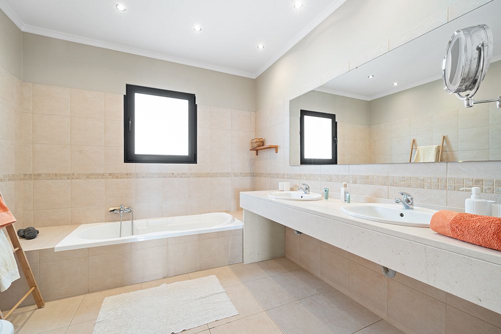 Die Villa bietet großzügigen Platz für bis zu sechs Gäste in drei elegant gestalteten Schlafzimmern. Die durchdachte Raumaufteilung der Schlaf- und Badezimmer ist ideal für Familien oder Gruppen, die Wert auf Privatsphäre legen.