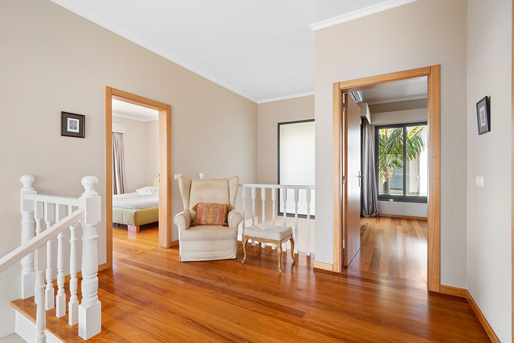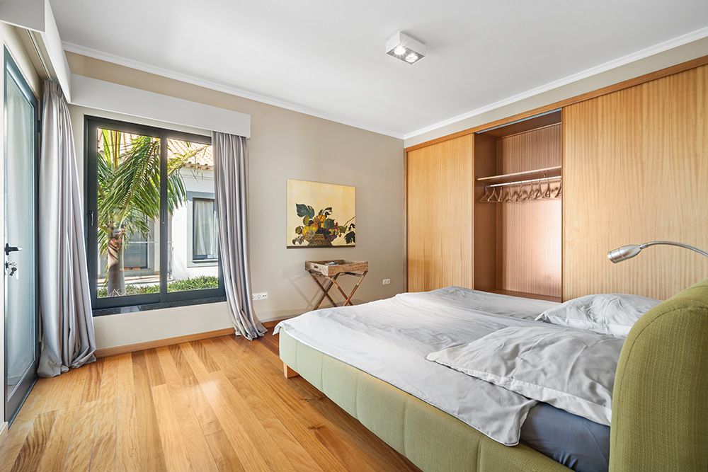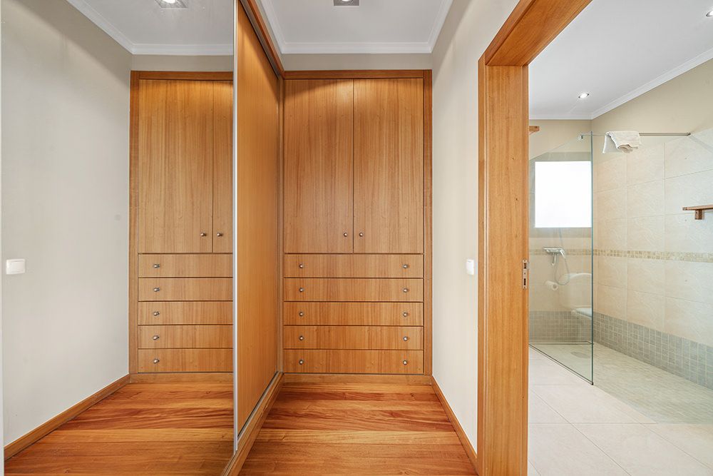 Das Hauptschlafzimmer besticht durch ein großzügiges 2 × 2 m King-Size-Bett, einen eigenen Ankleidebereich und ein privates En-Suite-Badezimmer mit begehbarer Dusche.